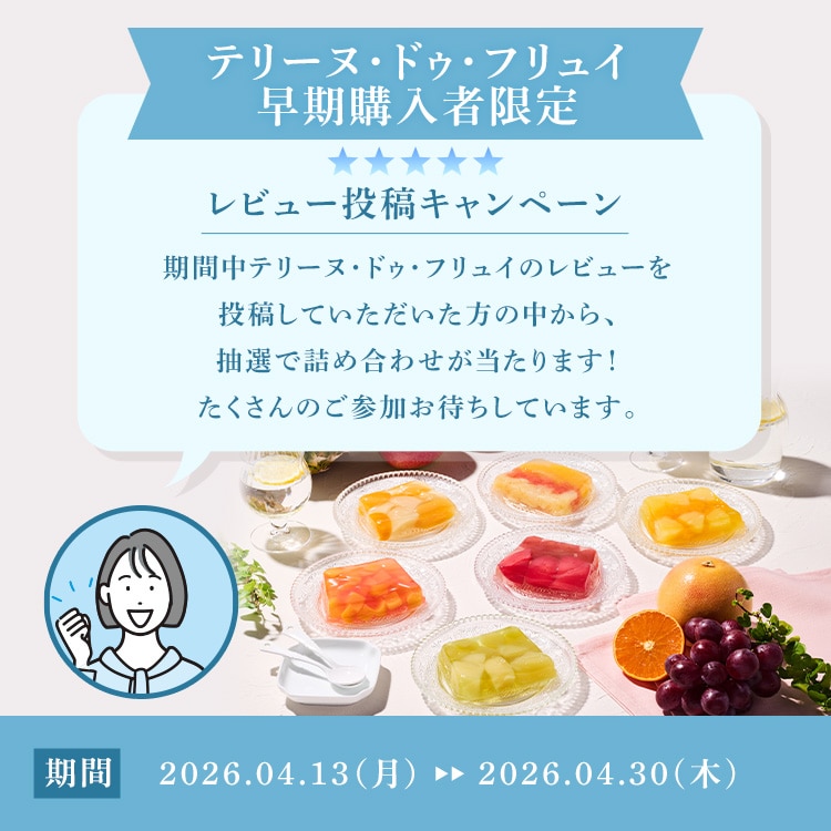 今までに色んな美味しいゼリーをお取り寄せしていますがやはりテリーヌドゥフリュイが最高です。フルーツがとても美味しく口当たりが最高でお気に入りです。少し贅沢ですが毎年夏には必ず購入しています。