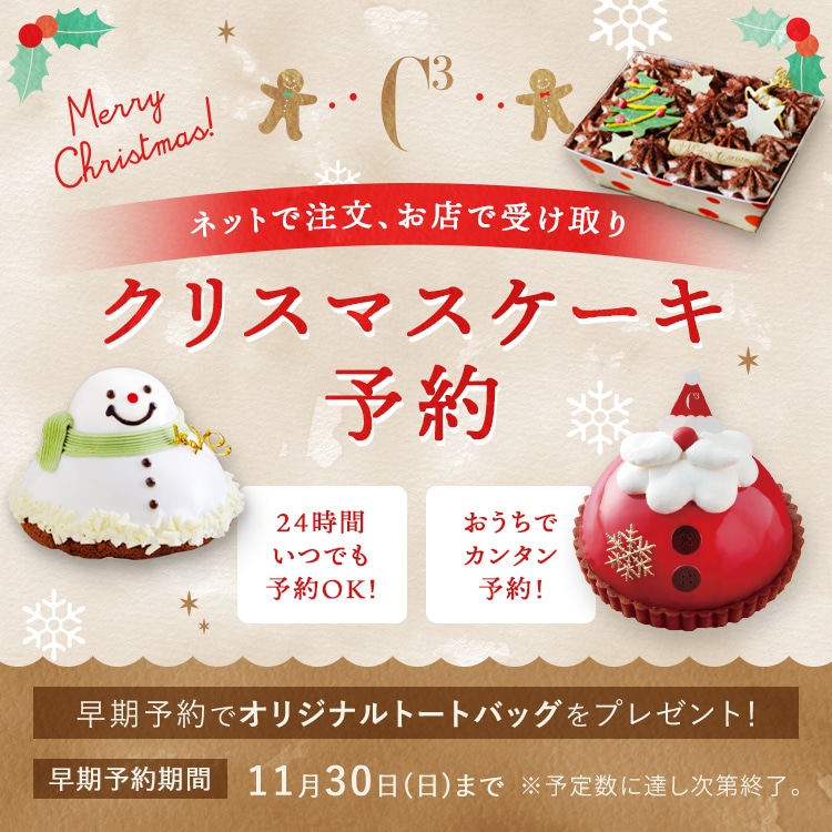 シュゼットオンラインショップの店舗受取ページより、クリスマスホールケーキのご予約後、店頭でご入金いただくと応募完了とさせていただきます。