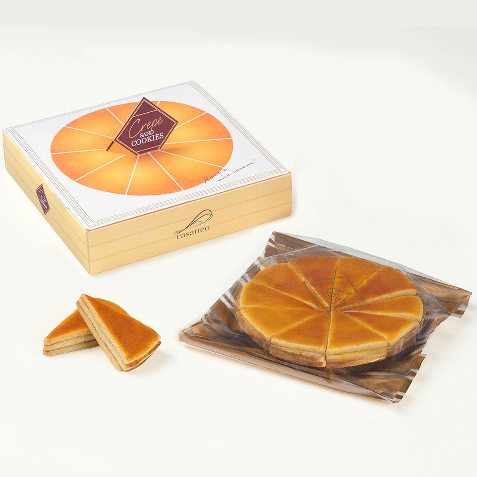 薄焼きクレープ皮とバニラが香るクッキーを交互に重ねて こんがり焼き上げた、新食感クッキー「クレープサンドクッキー」