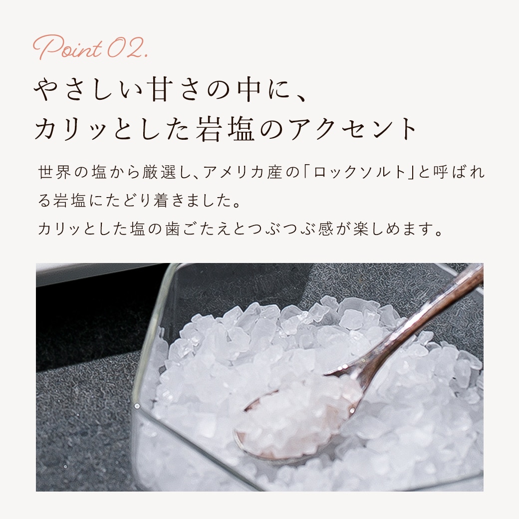 塩の結晶がアクセント、ハートがかわいい【しあわせサブレ】。香り豊かな発酵バターに、岩塩がカリッと口の中ではじけます。