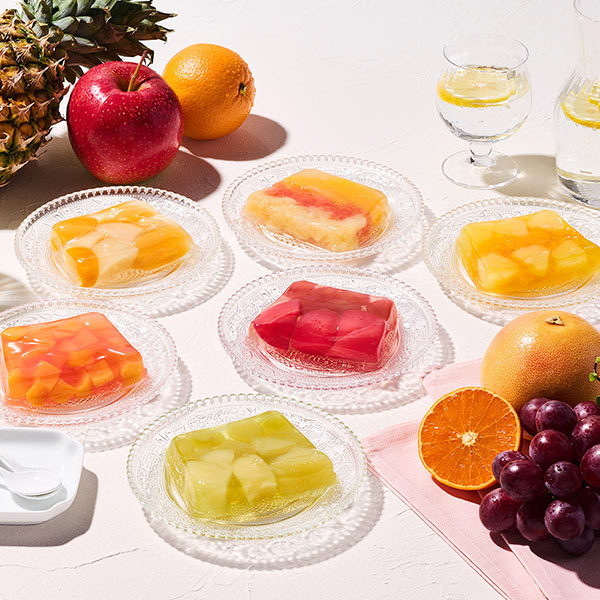 内容量 【テリーヌ・ドゥ・フリュイ】〈パイン&みかん〉2個、〈アップル&イエローピーチ〉2個、〈ピーチ&アプリコット〉1個、〈グレープ&ピーチ〉1個、〈ポワール&グレープ〉2個、〈オレンジ&グレープフルーツ〉1個
