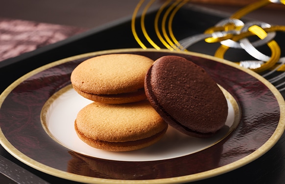さっくり焼き上げたラング・ド・シャ(猫の舌)に、ラムレーズン入りのクリームをサンドしました。どなたにも愛される味です。