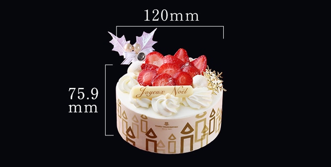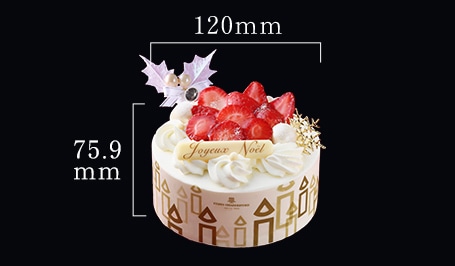 サイズ | ケーキ:直径12.0cm×高さ7.59cm(土台までの高さ4.66cm) ※サイズ誤差:±約3㎜ 化粧箱:横16.0×縦16.5×高さ11.8cm |