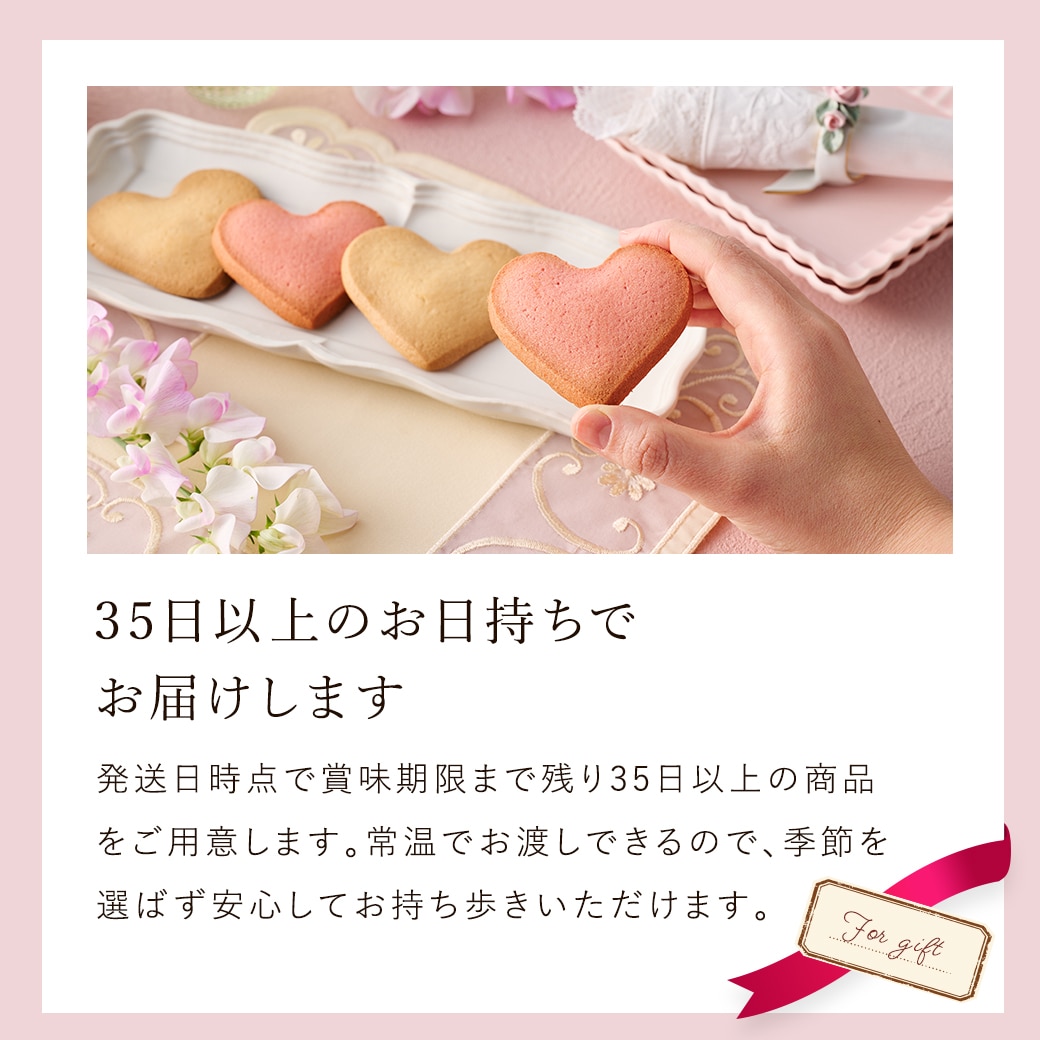 発送日時点で賞味期限まで残り35日以上の商品をお届けします。常温でお渡しできるので、季節を選ばず安心してお持ち歩きいただけます。