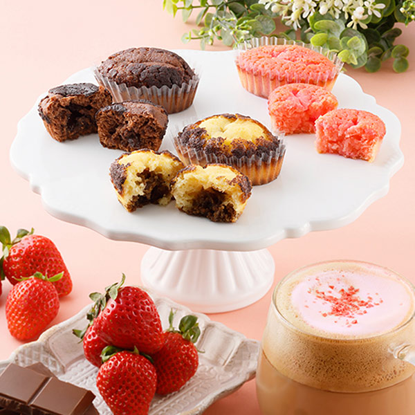 いちごペーストを使用した生地に、ジューシーな味わいのいちごソースを後入れ注入。