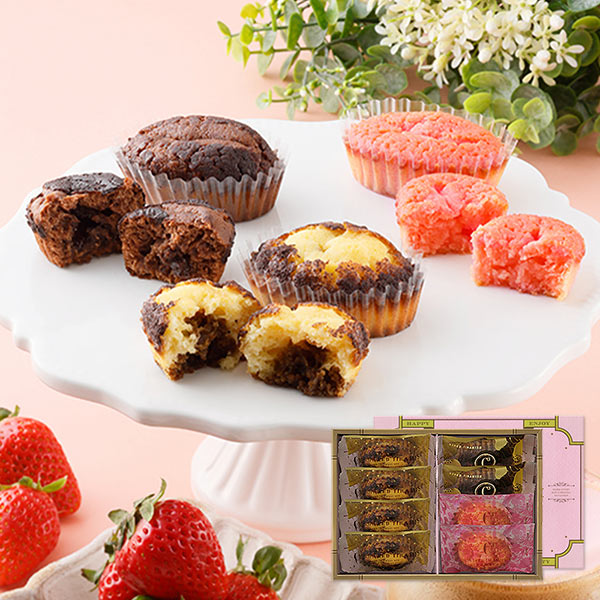 一番人気商品焼きティラミスと、季節限定フレーバー、ショコラといちごのセットです。