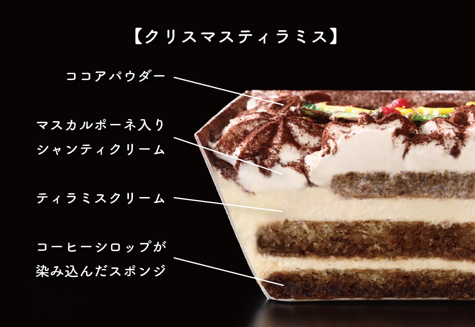 シーキューブの代表商品のティラミスに、可愛らしいツリーや星でにぎやかにデコレーションした限定ティラミスが登場。クリスマスの楽しい気分を盛り上げます。