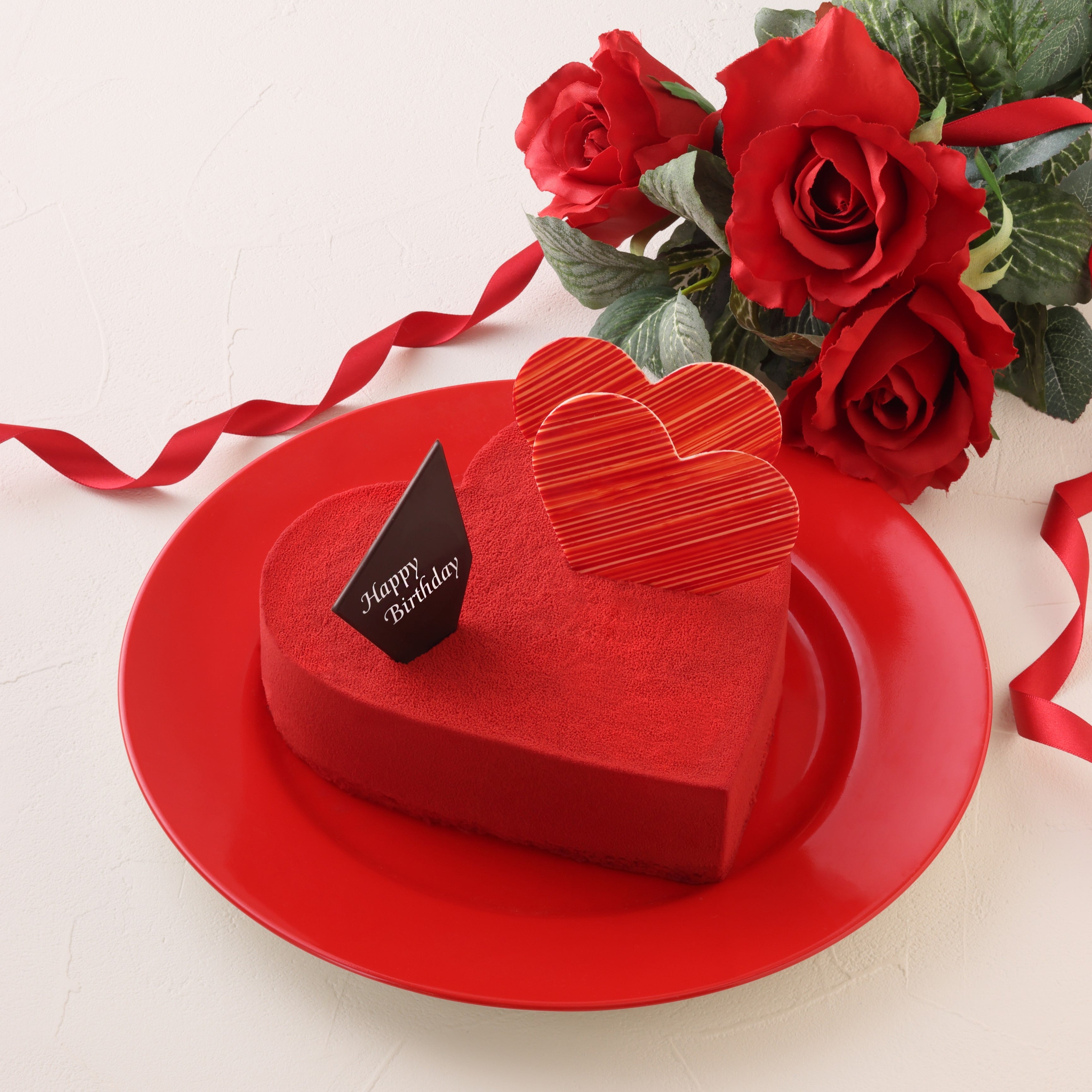 マンダリンといちごのムースでやわらかく甘酸っぱいハートのケーキをご用意いたしました。