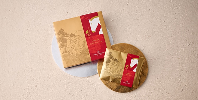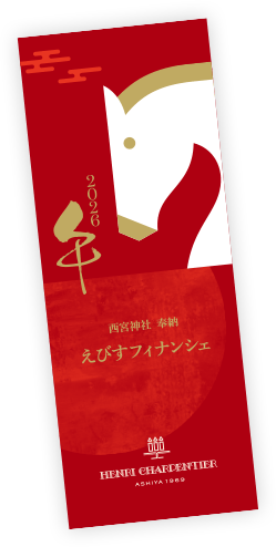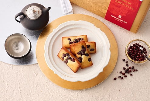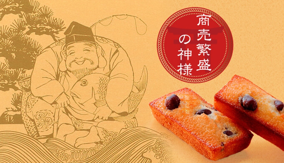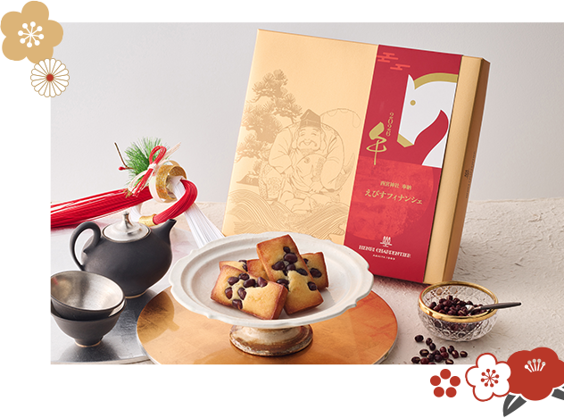「えびす様」にちなんだこのフィナンシェは、アンリ・シャルパンティエのフィナンシェに、縁起物「大納言小豆」をのせて焼き上げた贅沢な逸品。