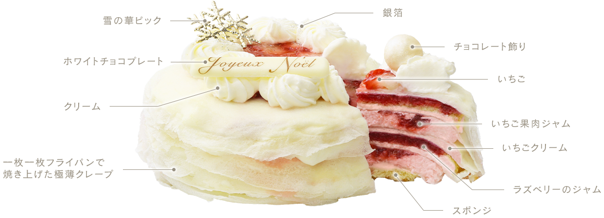 見た目にも可愛らしいクレープに仕上げましたので、お子さまから大人の方まで、皆さまで囲んで楽しめるミルクリームです。
