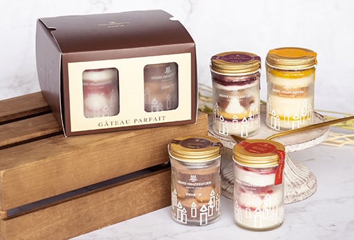 瓶ならではのデザイン性にも気を配りながら、4種類のケーキをご用意いたしました。