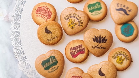 お菓子やパッケージにご希望のロゴやメッセージを入れて、世界にひとつだけのオリジナルスイーツをおつくりします。
