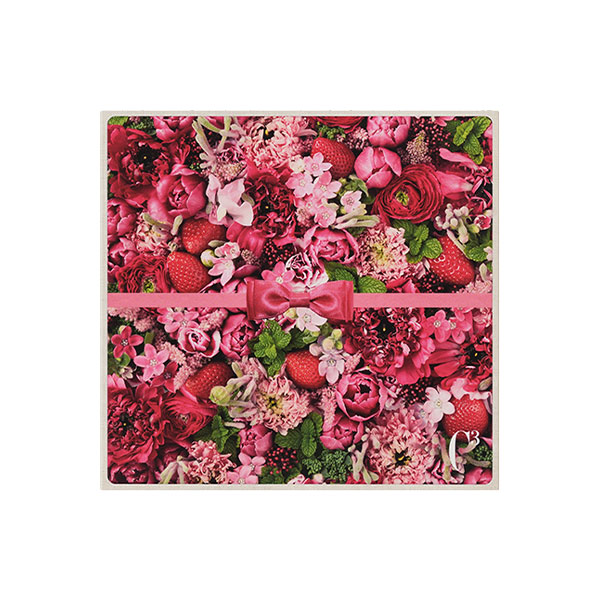 「花のピクニック」をテーマに、バスケットにお花と苺を詰めたイメージのパッケージです。