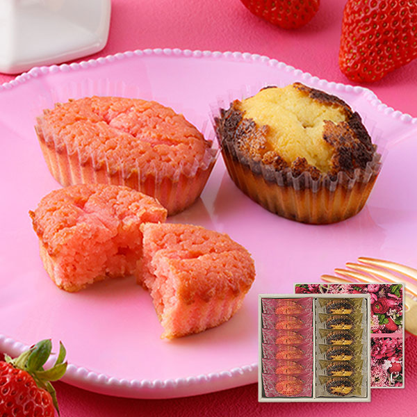 いちごペーストを使用した生地に、ジューシーな味わいのいちごソースを後入れ注入。