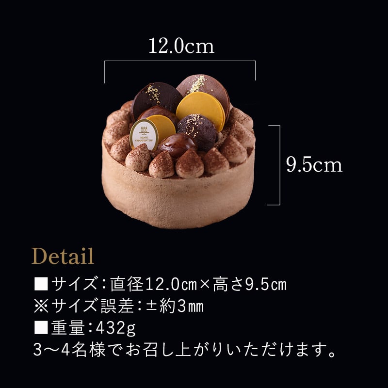 内容量 | ザ・ショートケーキ<ショコラ×丹波栗> 1個 ・チョコレートプレート×1個 ・転写シート×1枚 ・ろうそく×5本 ※チョコプレートは別添となります。解凍後、ケーキ天面に載せてください。 |