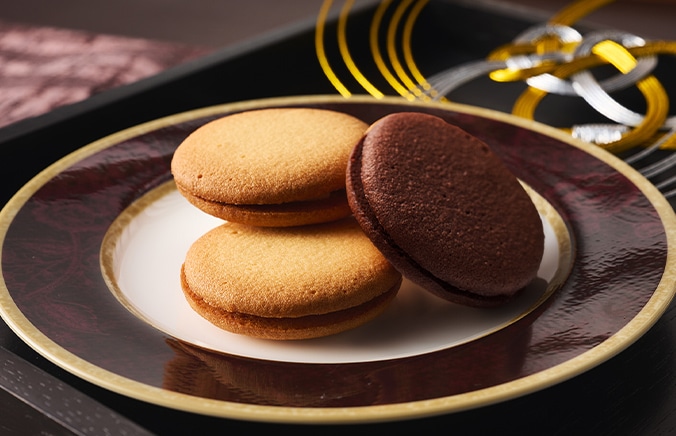 さっくり焼き上げたラング・ド・シャ(猫の舌)に、ラムレーズン入りのクリームをサンドしました。どなたにも愛される味です。
