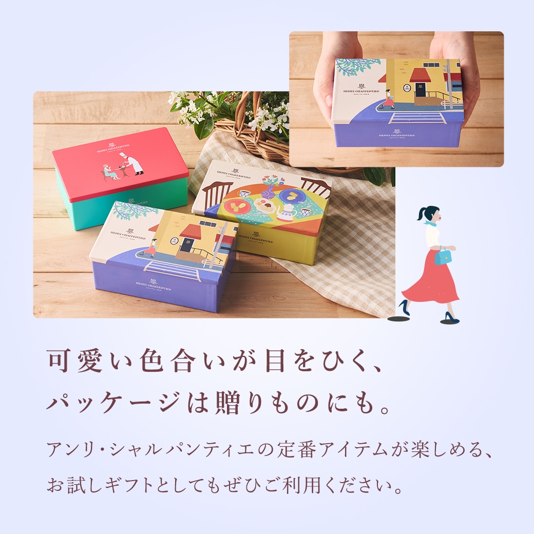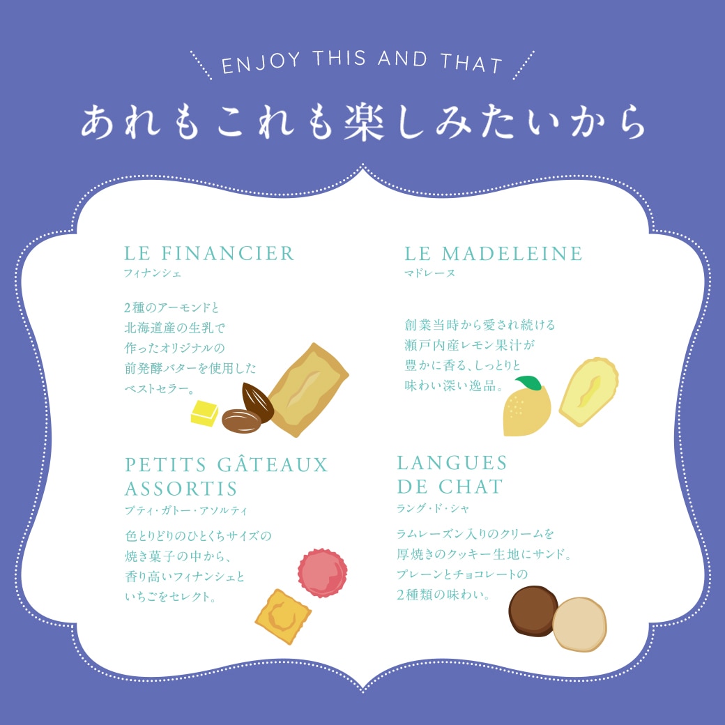 定番の焼き菓子を可愛らしいオリジナルデザイン缶に詰合せた、ギフトにおすすめのミニアソート。
