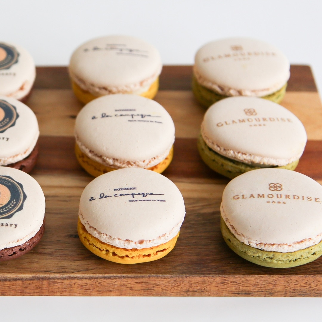 | 特記事項 | ・プリントマカロンは1注文につき、1画像です。 ・マカロンの表面の白い部分にデザインをプリントします(3個入りの場合は3個にプリント。) ・マカロンの裏面は3種類のカラー(フレーバー)の組み合わせになります。 ・最小発注数は30セット以上になります。 ・お届け日は最短10日後になります。 ・商品サイズは直径45mm×厚さ約25mm(実際の印刷範囲は直径35mm) ・プリントマカロンの商品の個包装フィルム/箱デザインは予告なる切り替わる可能性がございますのでご了承くださいませ。  |
