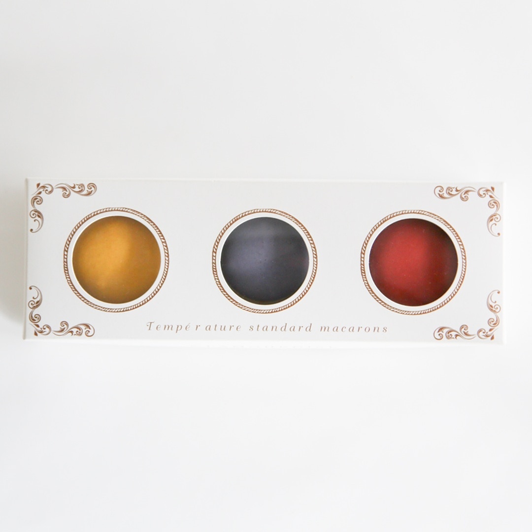・マカロンの裏面は3種類のカラー(フレーバー)の組み合わせになります。