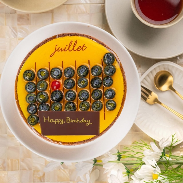 大切な記念日をデコレーションしたカレンダーデザインのケーキです。